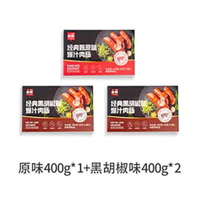 【皮脆肉香 爆汁Q弹】喜辉烤肠 醇厚的肉香 好吃又有嚼劲 紧实多汁 8根/盒 原味*1+黑胡椒*2(共24根