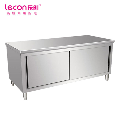 乐创(lecon) 商用双拉门工作台 厨房操作台面不锈钢储物柜304型1.8*0.8米 LC-J-BG01 不锈钢色