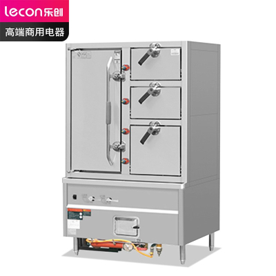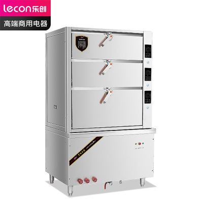 乐创( lecon) 商用海鲜蒸柜 食堂酒店三门海鲜蒸柜燃气 豪华款 LC-J-HXR3X 不锈钢色