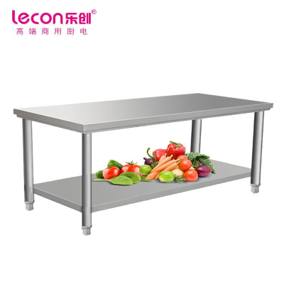乐创(lecon) 商用双层平板工作台 厨房操作台面不锈钢层架 201型1.5*0.6米LC-J-BG02 不锈钢色