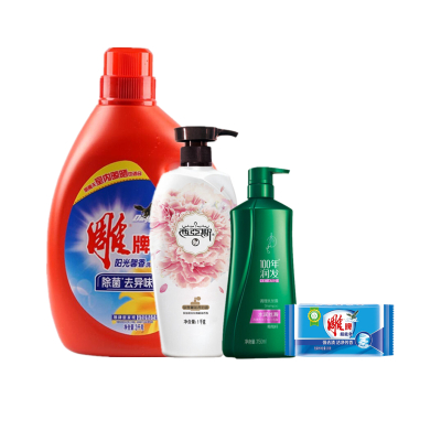 100年润发水润丝滑洗发露750ml+西亚斯浪漫邂逅沐浴露1L+雕牌阳光馨香洗衣液 3kg+雕牌超能皂226g 750ml+1l+3kg+226g