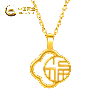 中国黄金 黄金足金999四叶草福字吊坠(+S925银项链) ZGHJ210690(单位:件) 金色