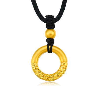 赞缘阁黄金足金珠珠平安扣吊坠情侣款(单位:件) 黑色0.3-0.4g