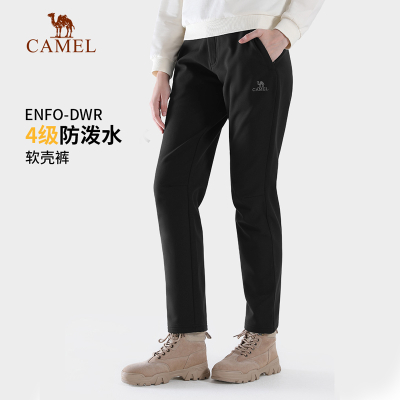 骆驼户外软壳裤长裤秋季新款保暖休闲裤防泼水防风登山裤A1W2VV125条 黑色 M