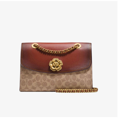 COACH蔻驰Parker 26焦糖色山茶花链条斜挎包 配棕色老花 30585B4RU 单位:个 酒红