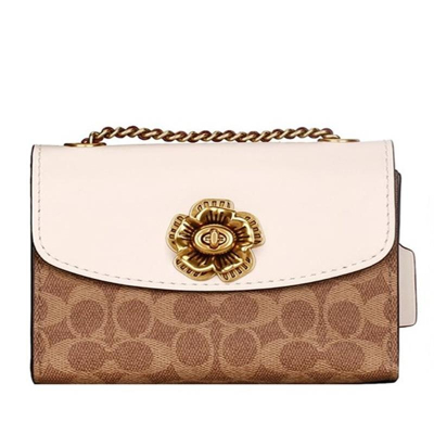 COACH蔻驰Parker 18迷你牛皮铆钉山茶花链条斜挎包 白色配棕色老花 34256B4HA 个 本白色