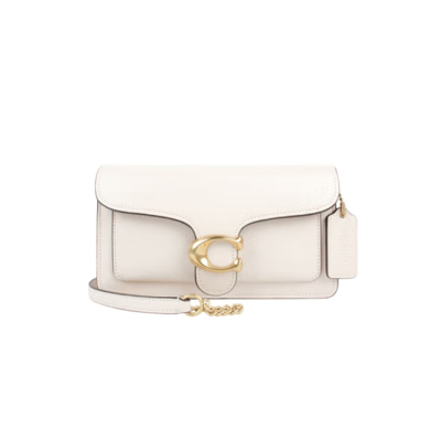 COACH驰 Chain 20 金色字母logo五金链条抛光鹅卵石纹 皮革单肩包斜挎包手拿包小号女个 白色