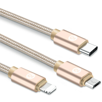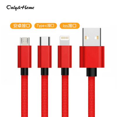 Only&Home 移动电源专用一拖三编织数据线 KL-YTS03 红色