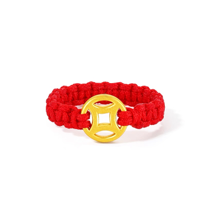赞缘阁 黄金足金铜钱红绳戒指(单位:件) 黄色-14#0.15g
