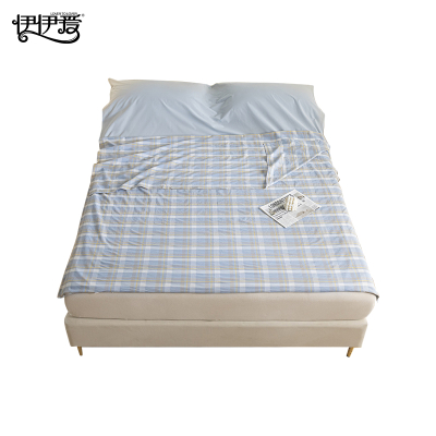 伊伊爱无印格子160*230cm全棉睡袋 SD0WL02401219(个) 海青