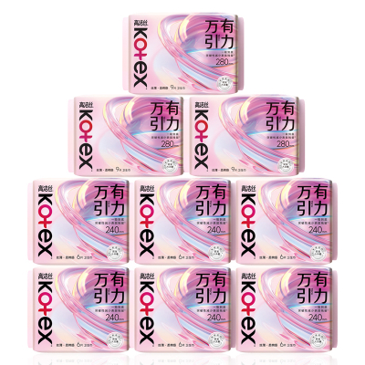 高洁丝(Kotex)万有引力卫生巾日夜组合240mm 6片*6包+280mm 9片*3包(单位:包) 茱萸粉