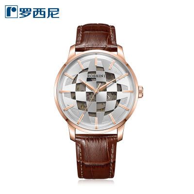 Rossini罗西尼 启迪系列【专柜同款】机械手表环球镂空白盘皮带男表50027G01E(单位:块) 白色