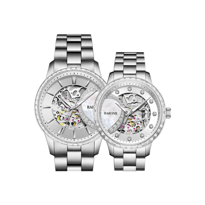 雷诺(RARONE)机械情侣表一对男女款一心一意贝母盘对表钢带腕表867041(单位:块) 银色
