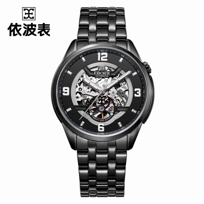 依波(EBOHR)手表男 大师系列全镂空耀黑钢带机械男表36360314 黑色