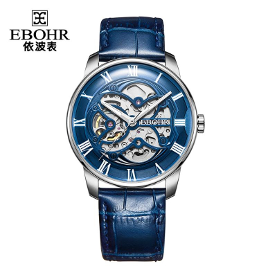 依波(EBOHR)探索者系列男士自动机械表国潮风镂空防水手表51480332 蓝色