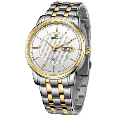 依波(EBOHR)手表皮带全自动机械手表男士商务双历时尚休闲腕表30080119 金色