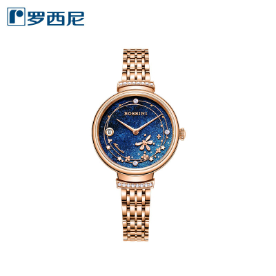 Rossini罗西尼 典美系列 机械手表星空蓝玫金钢带女表50082G05C(单位:块) 蓝色
