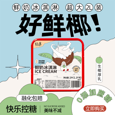 轻遇 SOFTCRUSH 鲜奶冰淇淋大桶2000ml家庭装(单位:盒) 白色 生椰厚乳