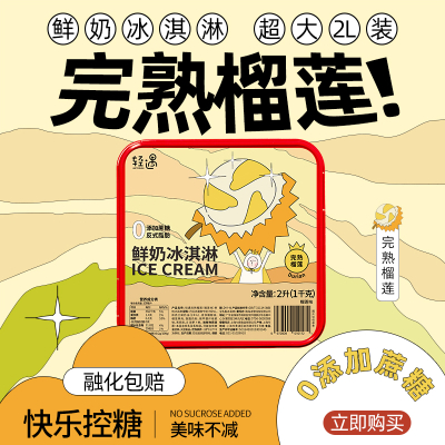 轻遇 SOFTCRUSH 鲜奶冰淇淋大桶2000ml家庭装(单位:盒) 金色 完熟榴莲