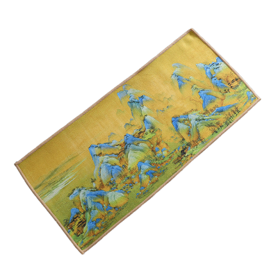 安赛瑞 茶巾 双面加厚毛绒吸水茶巾 茶席桌布 40×18cm 千里江山图 7A00207 个 黄色