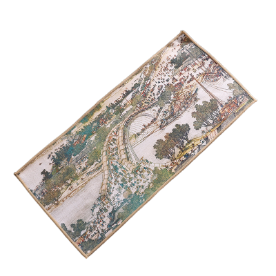 安赛瑞 茶巾 双面加厚毛绒吸水茶巾 茶席桌布 40×18cm 清明上河图 7A00208 个 黄色