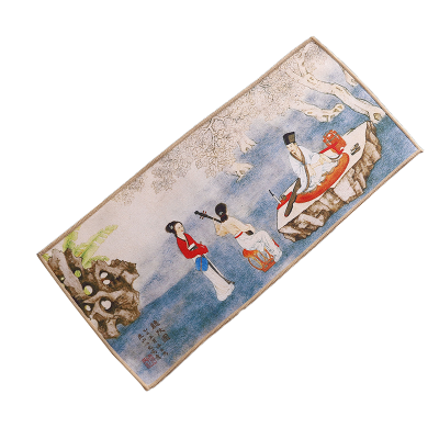 安赛瑞 茶巾 双面加厚毛绒吸水茶巾 茶席桌布 40×18cm 树下听阮图 7A00210 个 象牙色