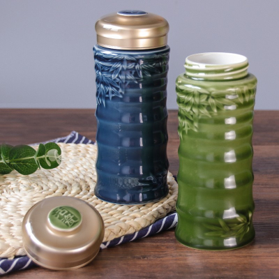 乾唐轩 竹节随身杯(大)330ml(双层) 耀州绿