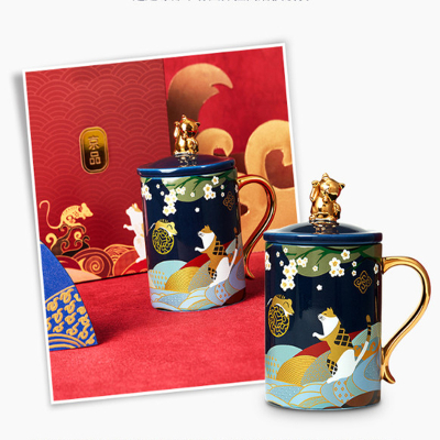 共禾京品福猫鼠钱陶瓷马克杯400ml 红色