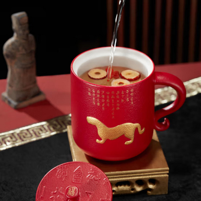 共禾京品虎福杯陶瓷马克杯420ml 红色