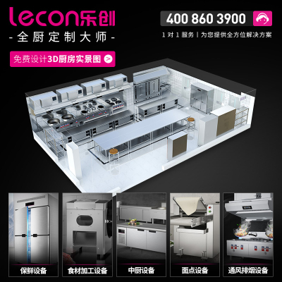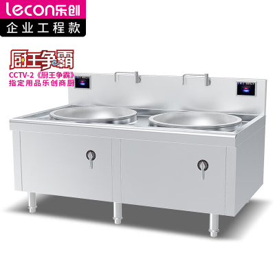 乐创(lecon)商用大炒+小炒组合灶 (20KW+15KW)大功率食堂炒菜电磁灶 201不锈钢工程款 LC-J-DX2015 银色