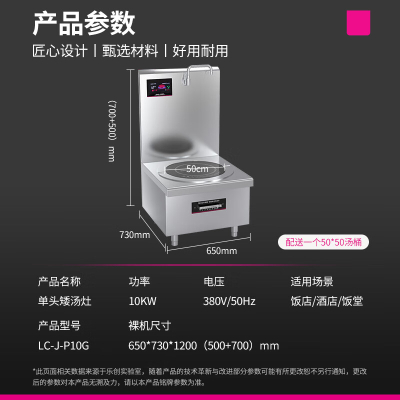 乐创( lecon) 商用单头矮汤炉 15KW大功率学校食堂熬汤高背汤灶 201不锈钢工程款 LC-J-DTL15P 银色