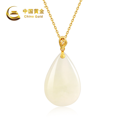 中国黄金 18K金镶和田玉水滴吊坠(赠S925银链)ZGHJ220735 白色