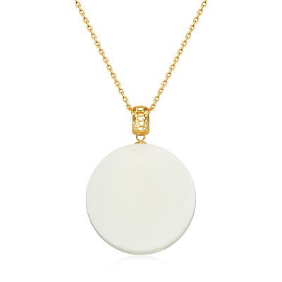 中国黄金 18K金镶和田玉圆形无事牌吊坠(+S925银项链) ZGHJ220589(单位:件) 白色