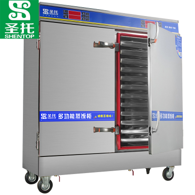 圣托(Shentop)多功能商用蒸饭柜 16盘双开门蒸饭机 STZ-D16(单位:台) 银色