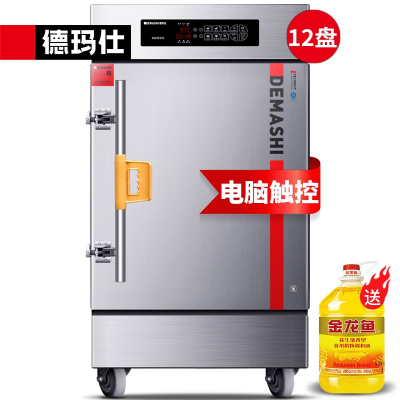 德玛仕(DEMASHI)蒸饭柜商用 学校企业酒店食堂蒸包蒸箱 电热蒸饭车 12盘记忆菜单电脑款款KZ-125D 380V 银色