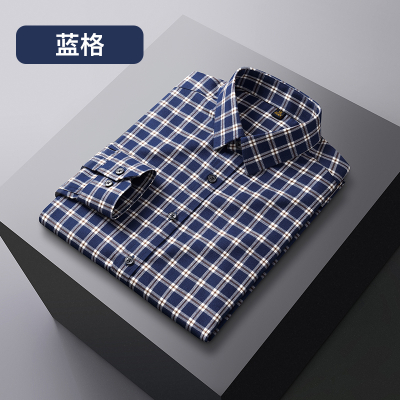 丰讯男士长袖绵羊毛衬衫格子休闲上衣春秋FXPS2422(单位:件) 蓝格 175