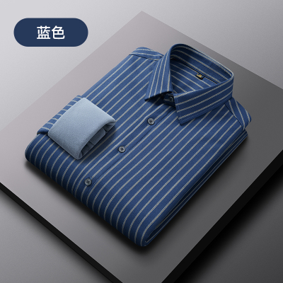 丰讯男士长袖绵羊毛保暖衬衫加绒休闲上衣FXPS2480(单位:件) 蓝条 175