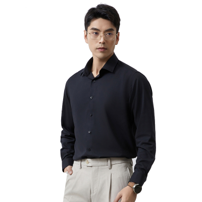 丰讯莫代尔桑蚕丝长袖衬衫商务纯色正装春夏男士衬衣FXPC2402(单位:件) 黑色 190