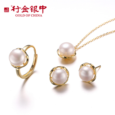 行金银中 S925银新款珍珠项链女轻奢设计感淡水简约珍珠套装(单位:件) 黄色