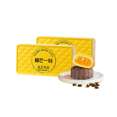 榴芒一刻(芒果芝士冰皮月饼+生巧脆脆冰皮月饼68g*2枚)*2盒【无礼品袋】